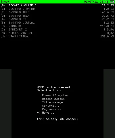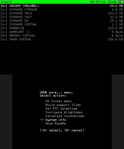 若发现没有Autoboot EMUNAND选项,则代表主机没有虚拟系统,直接对真实系统做就行