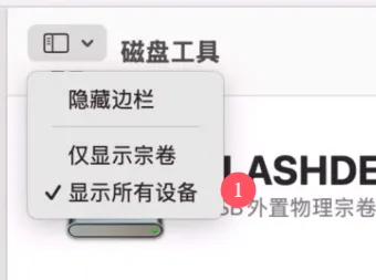 - 点击磁盘工具旁边的小菜单,然后选择 “显示所有设备”: