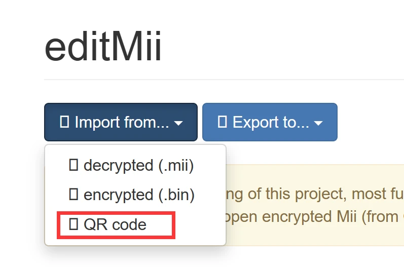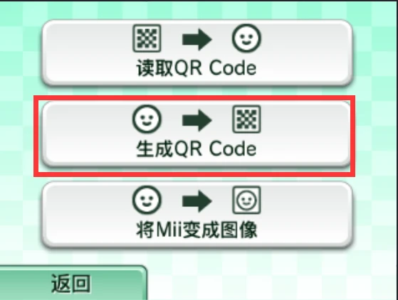 - 选择QRcode/图像 -> 生成QRCode(二维码) -> 选择你的mii确认