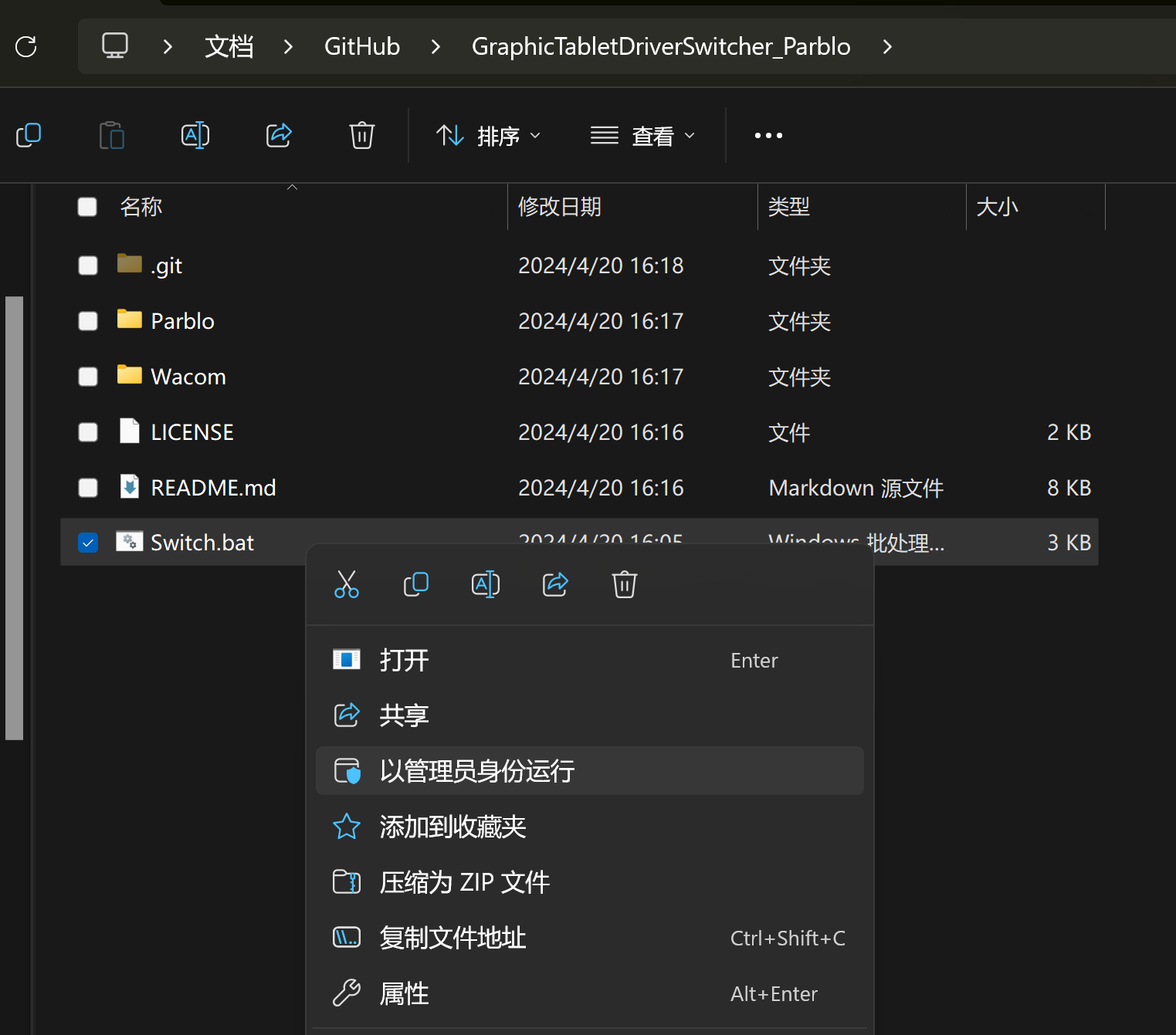 解决起来其实也简单,要用驱动的时候直接替换一下对应家的 wintab32.dll 就行了。我查了一下,看到Zarpyk写了一个针对于绘王和Wacom的一键切换脚本,于是我就简单修改了一下,适配了 Parblo (Ninos Q II) 和Wacom的驱动。