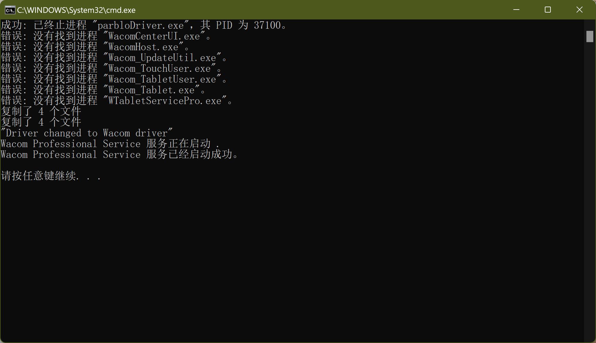 - 等待进程跑完之后,数位板驱动应该就切换好了。