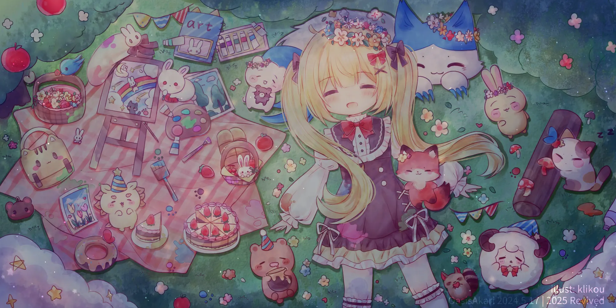 玩累了的 Akari 和小动物们由于体力不支,倒在了一片花草地上,就这么睡着了。